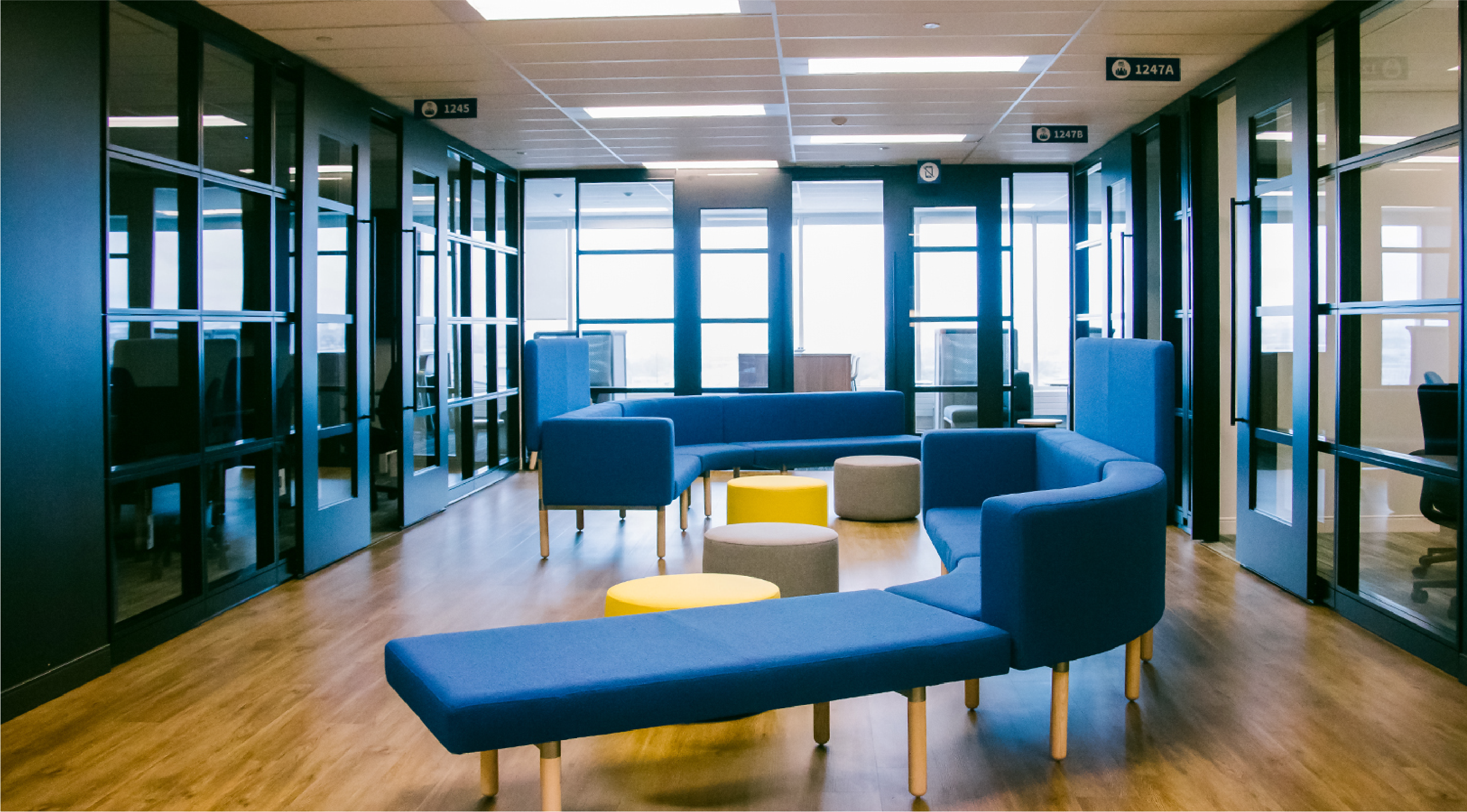 Aviva relocated over 1800 people from their existing Scarborough location into brand-new headquarters in downtown Markham. The project lead, Scott Dorion (RWT Inc.), along with POI and Aviva helped set the project scope and support their vision and workplace strategy by implementing their ‘Our Space Design Objectives’ which deemed furniture products as integral to the employee and customer experience. In order to increase collaboration, Aviva knew panels had to come down for teams to better integrate while also having access to more flexibility and choice in their meeting room selection.