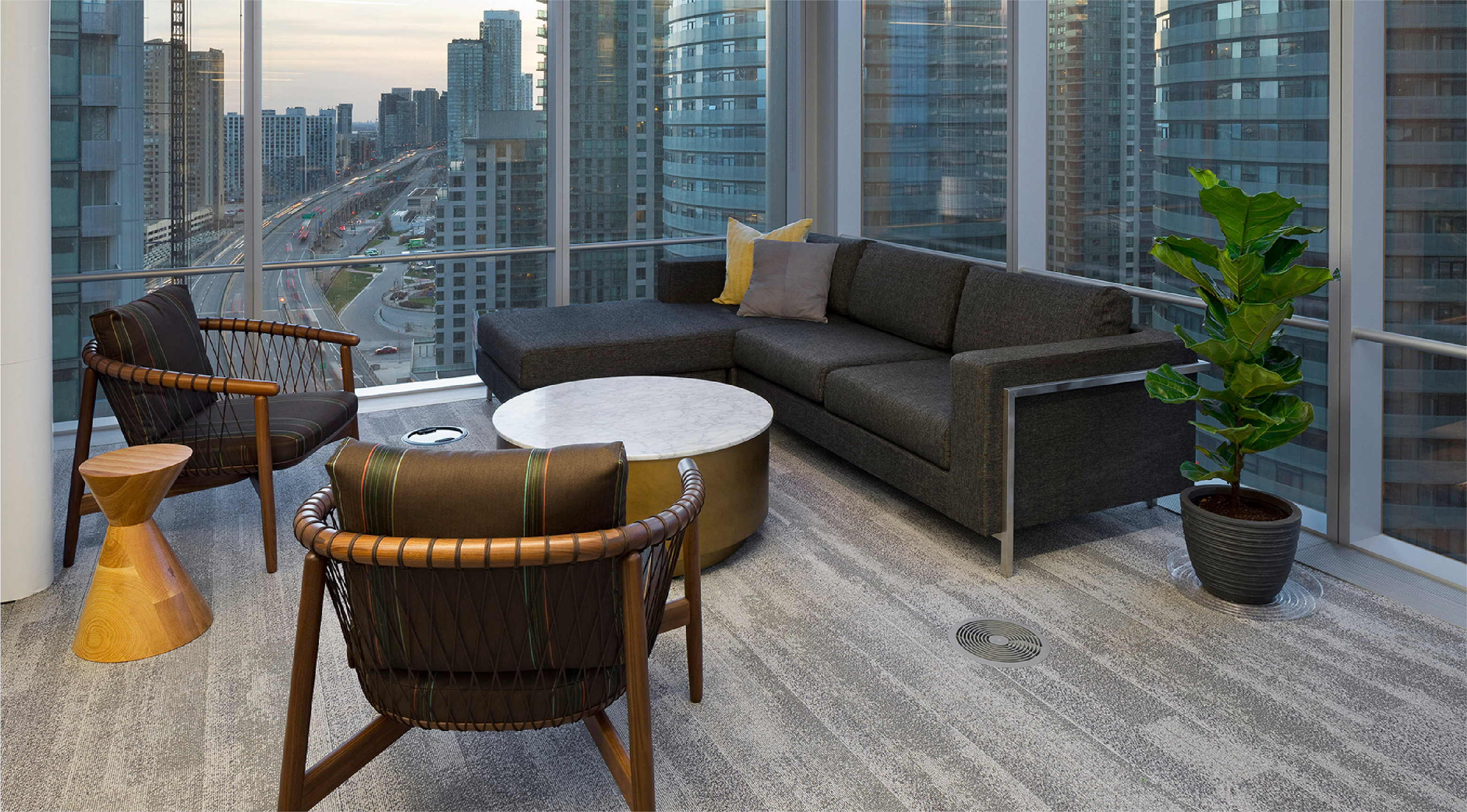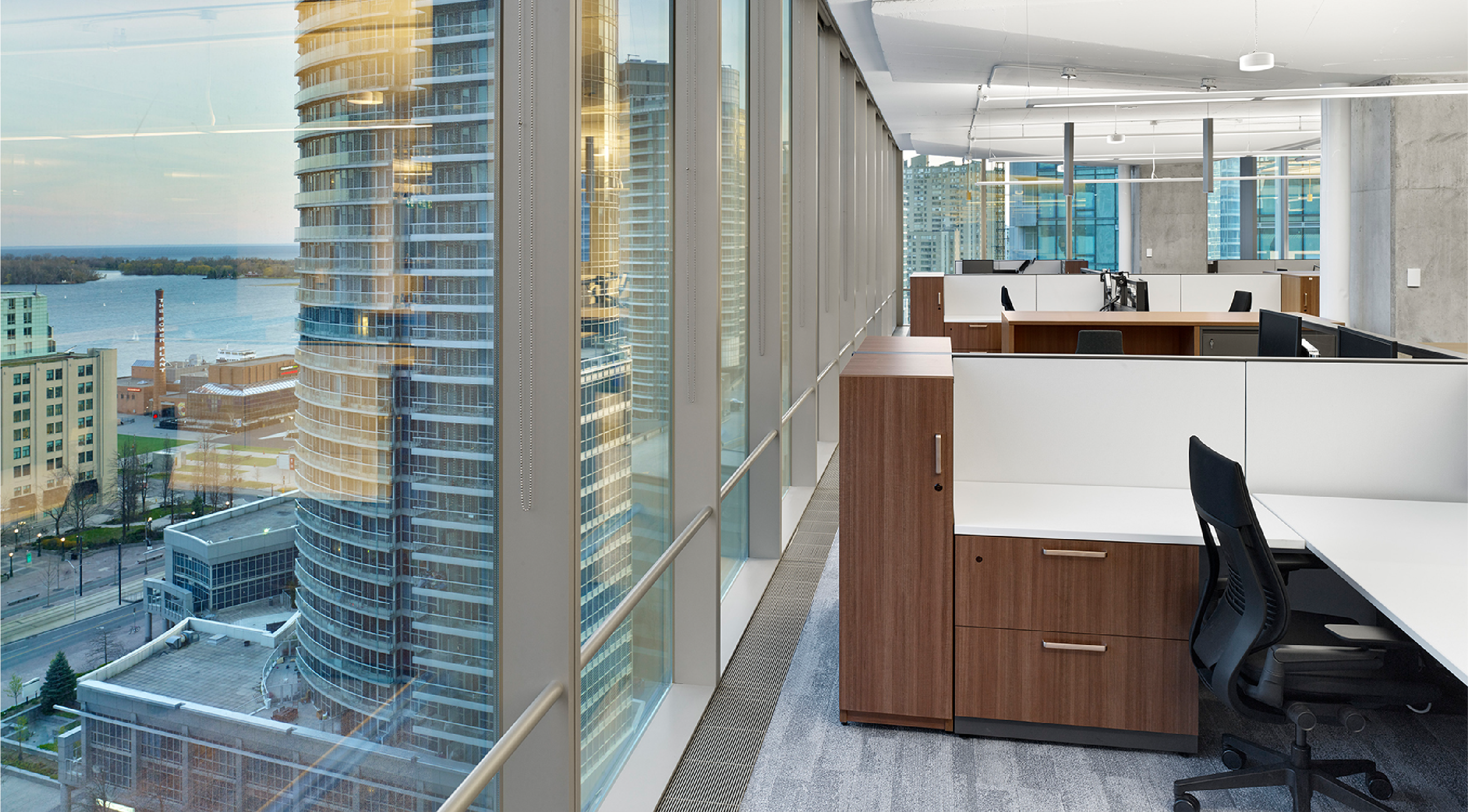As one of the largest real estate service and property management providers in Canada, Bentall Kennedy needed to ensure that their new space reflected their premium brand positioning in the marketplace. This award-winning design space, spanning two floors in downtown Toronto, had to be well-being certified, aesthetically pleasing to support client meetings, and optimize workflow.