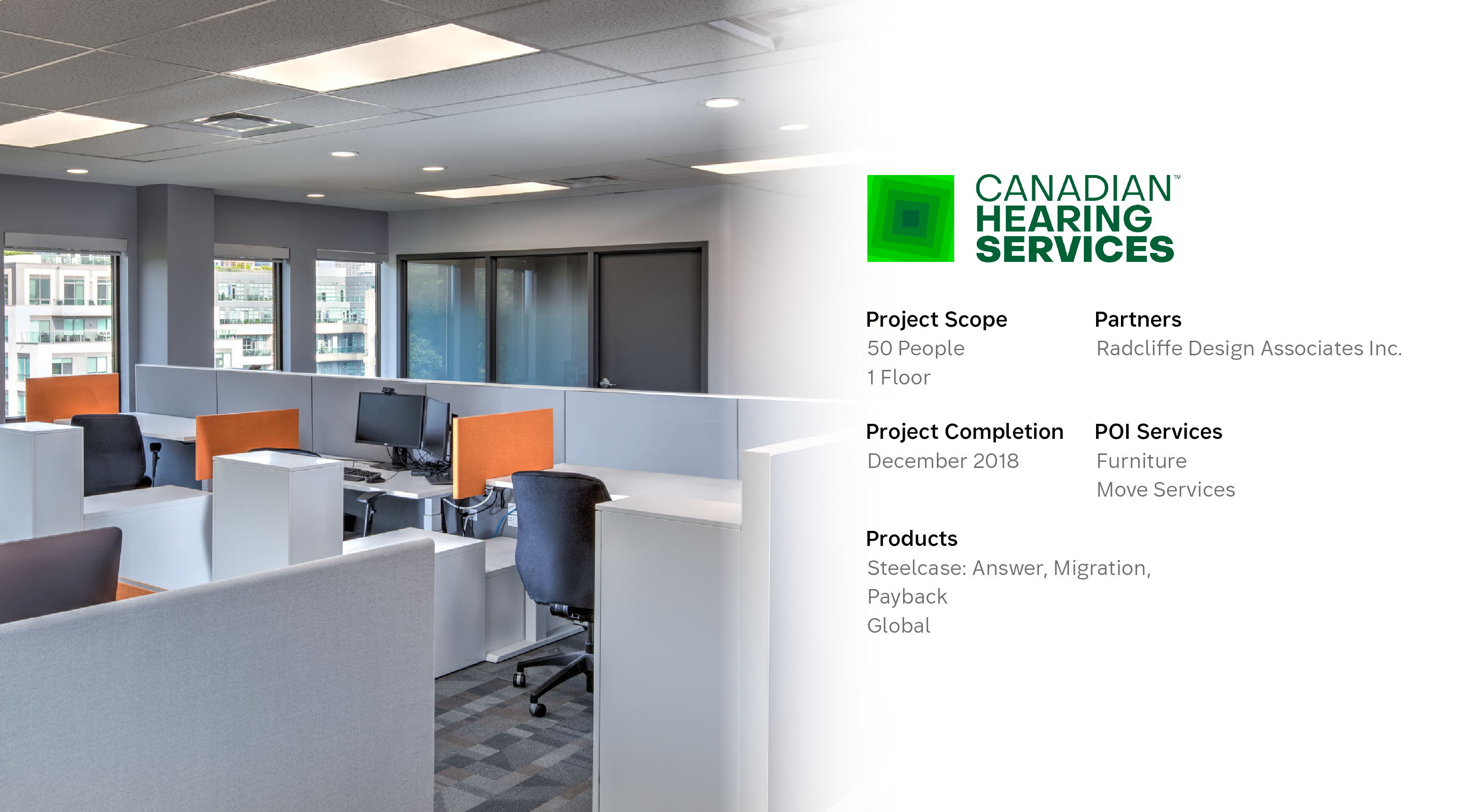Canadian Hearing Services (CHS) approached POI to supply interior furnishings for their head office. Their goal was a complete space and design refresh that would make better use of natural light by bringing down cubicle heights to create a more open concept collaborative environment.