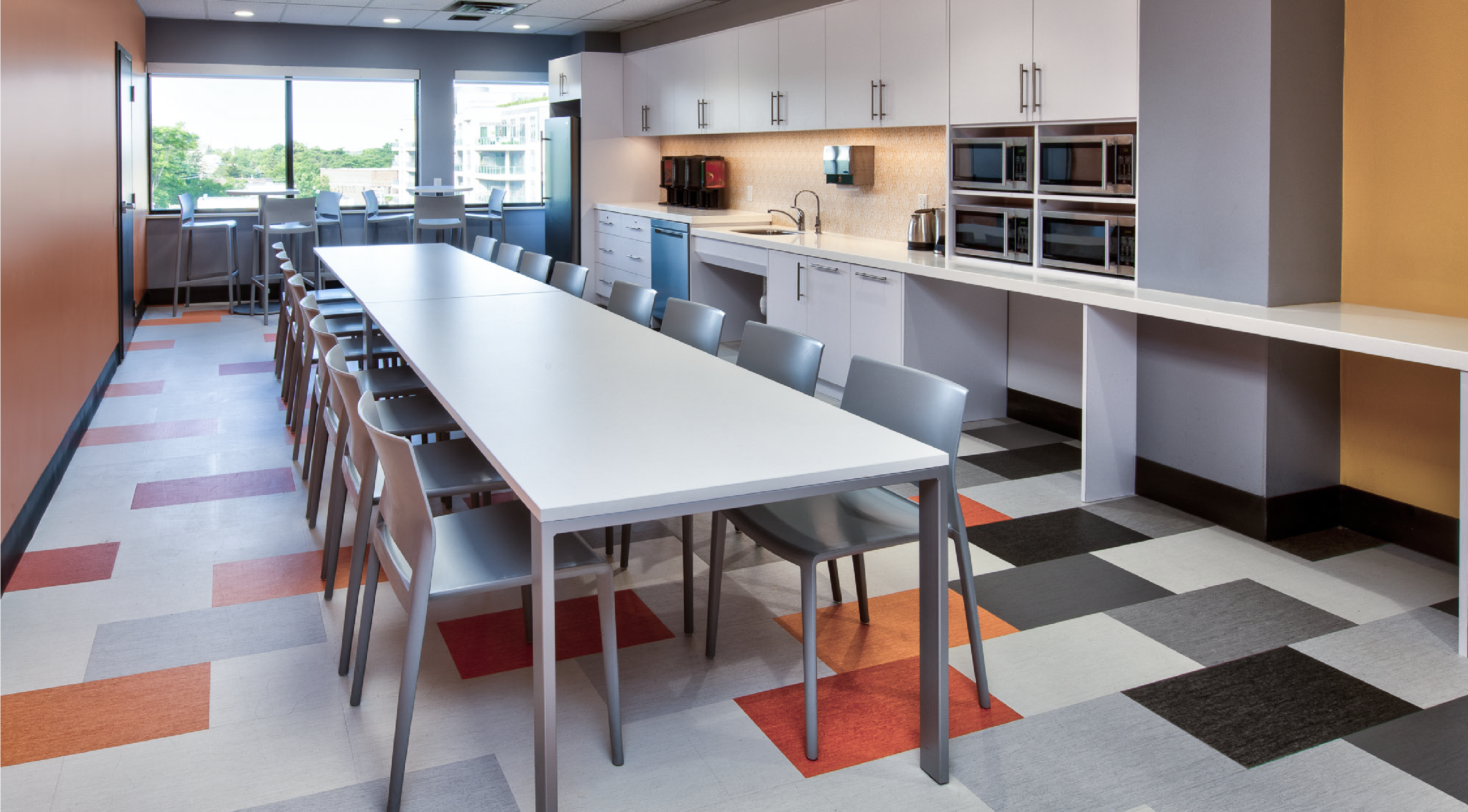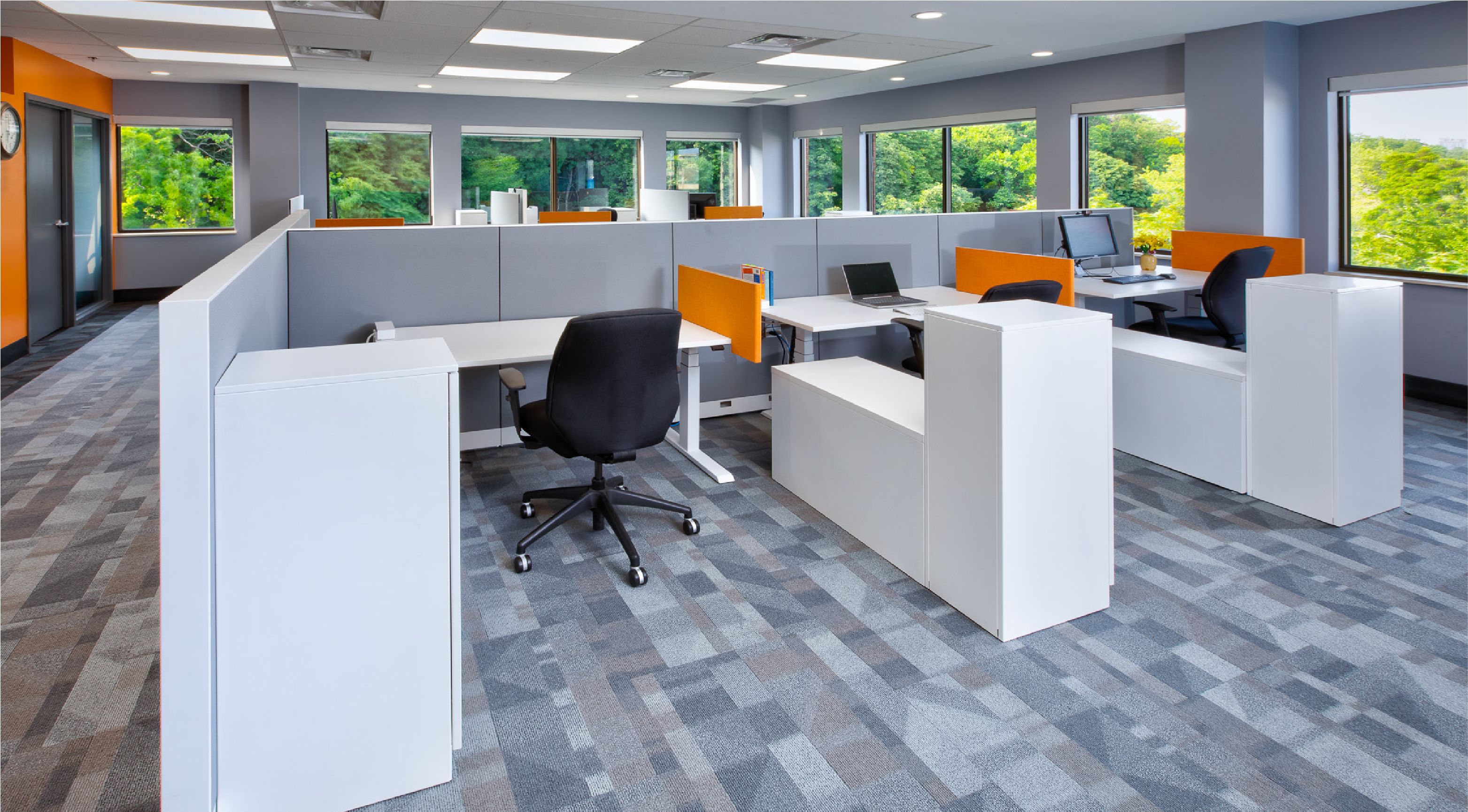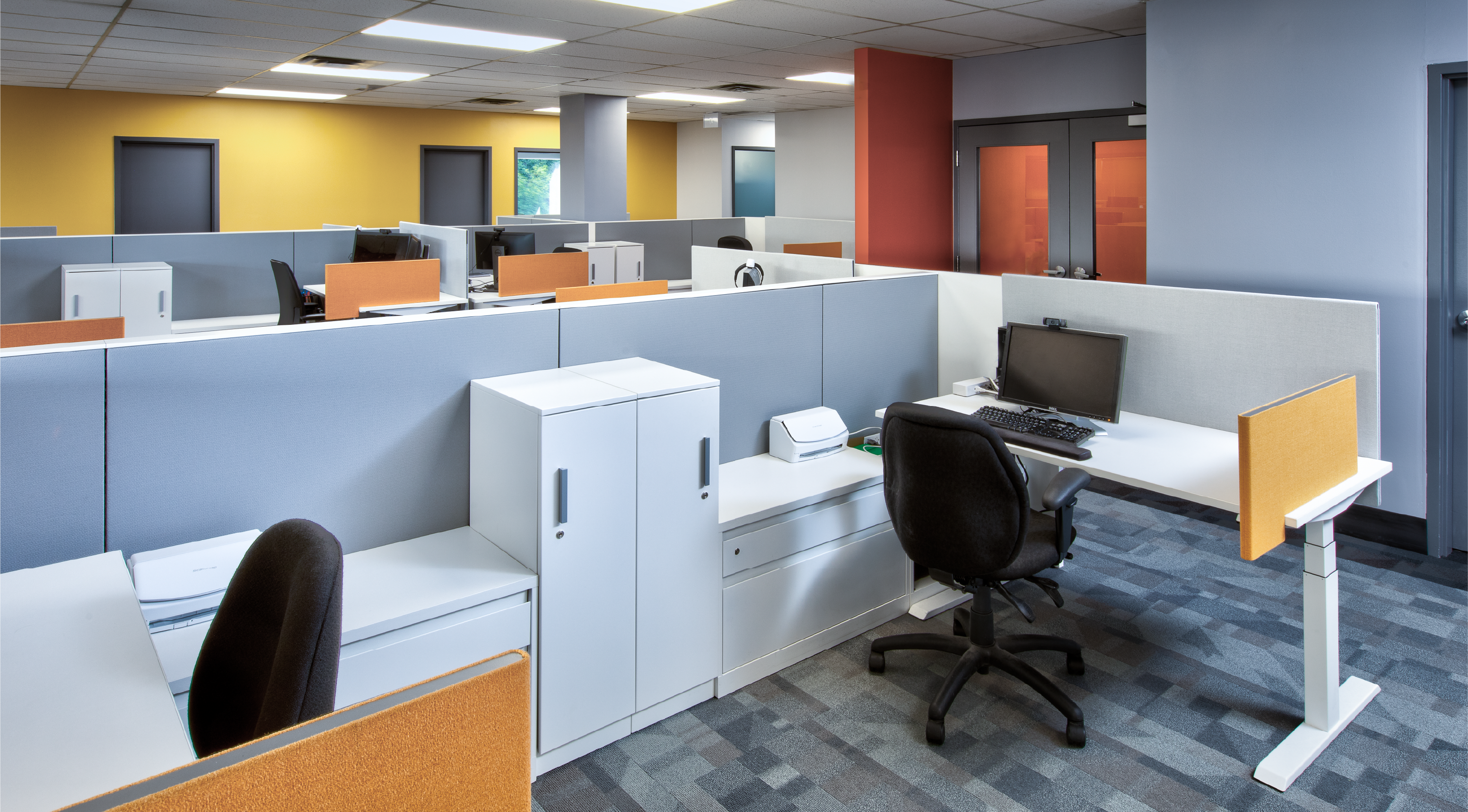 POI leveraged Steelcase product including Migration sit/stand desks, Answer workstations as well as Payback offices and filing cabinets with a common top to accommodate both storage as well as a working surface. POI also specified Global lunchroom tables and chairs.