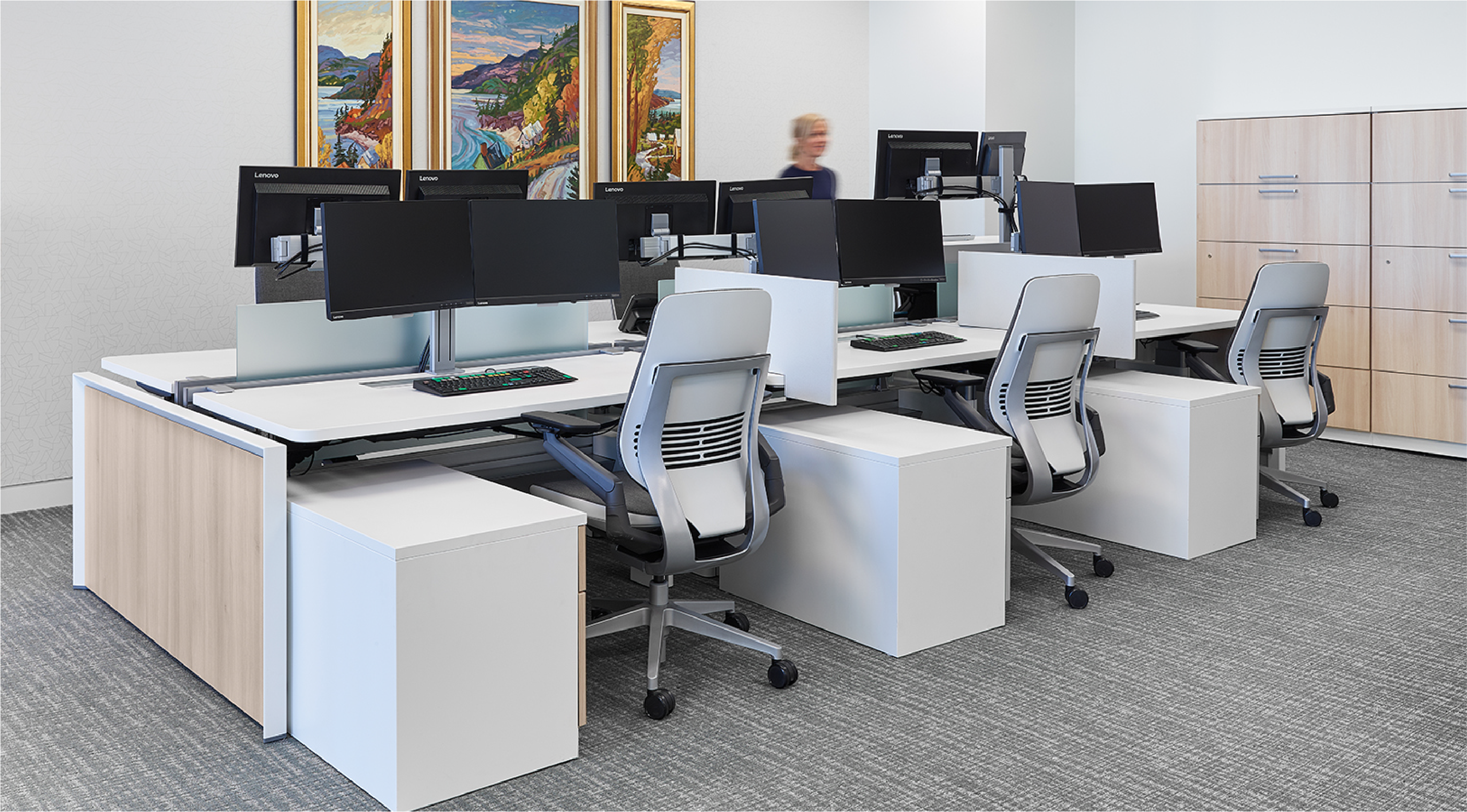 After thoroughly vetting their options, Interward selected Steelcase product for its comfort and sophistication. POI worked with the designer to ensure that the space worked harder and smarter. Taking advantage of the outdoor views, POI selected an extensive product portfolio with a cohesive colour palette to create the illusion of an expansive space. Furniture applications include benching systems with height adjustable desks along with multifunctional private office and boardroom settings featuring integrated technology for collaboration.