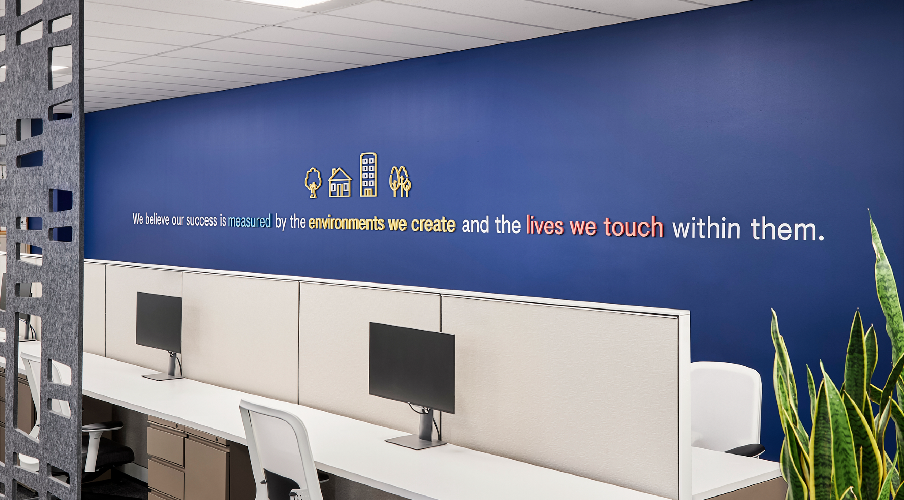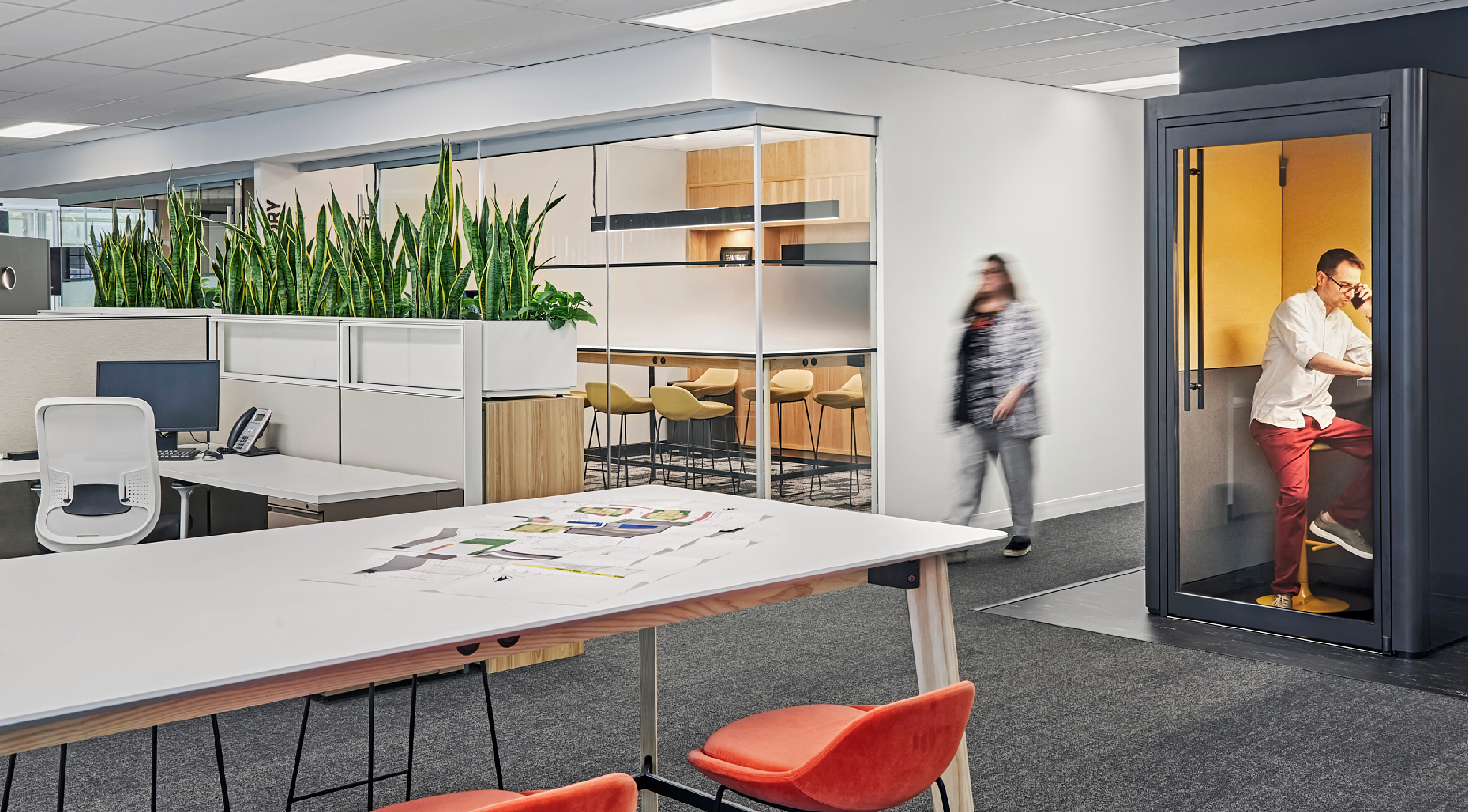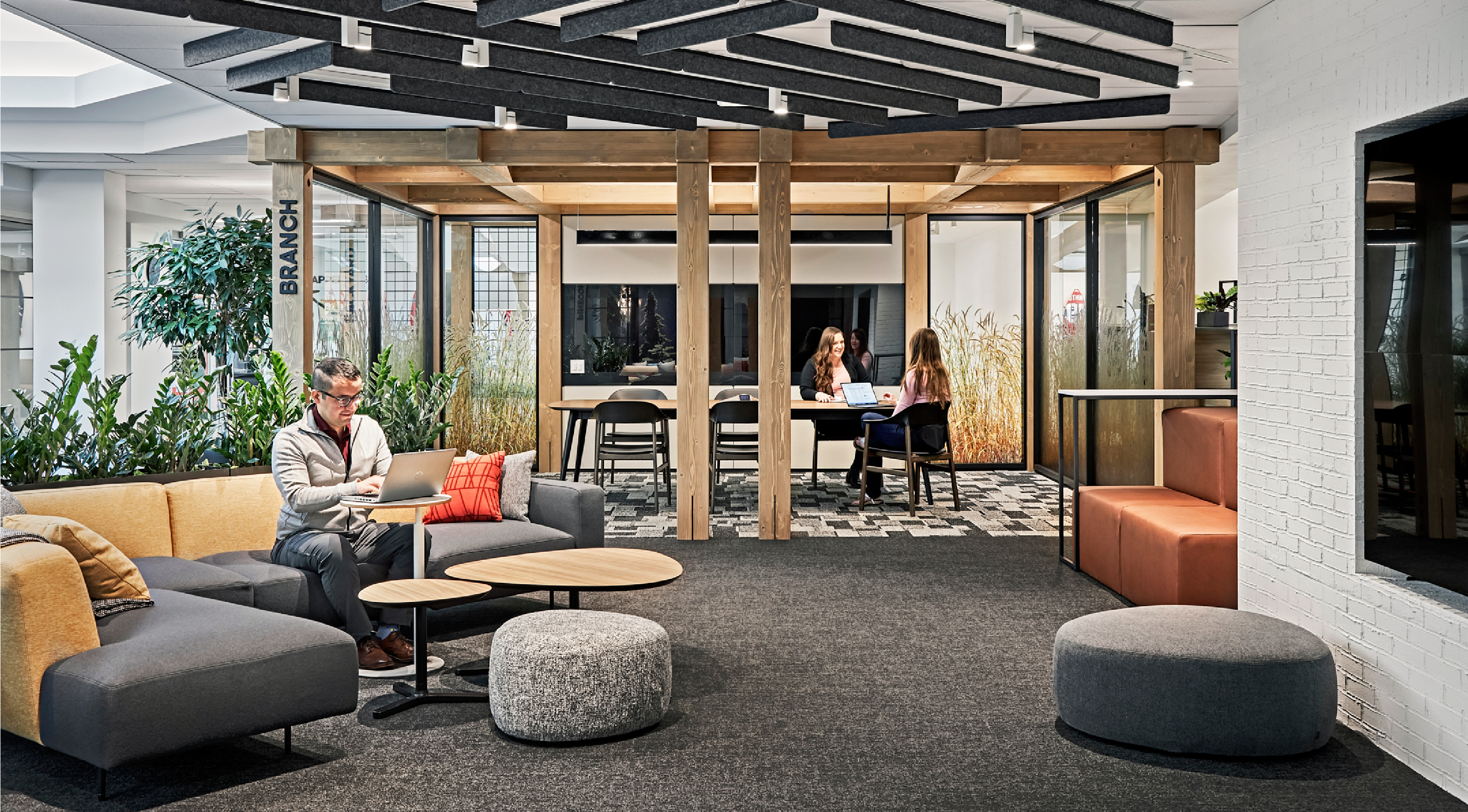 POI along with partners DIRTT and Capital Office Interiors, were part of a collaboration team that worked with the places&spaces designers to craft a workplace focused on choice, variety, equity, comfort, and accessibility.
