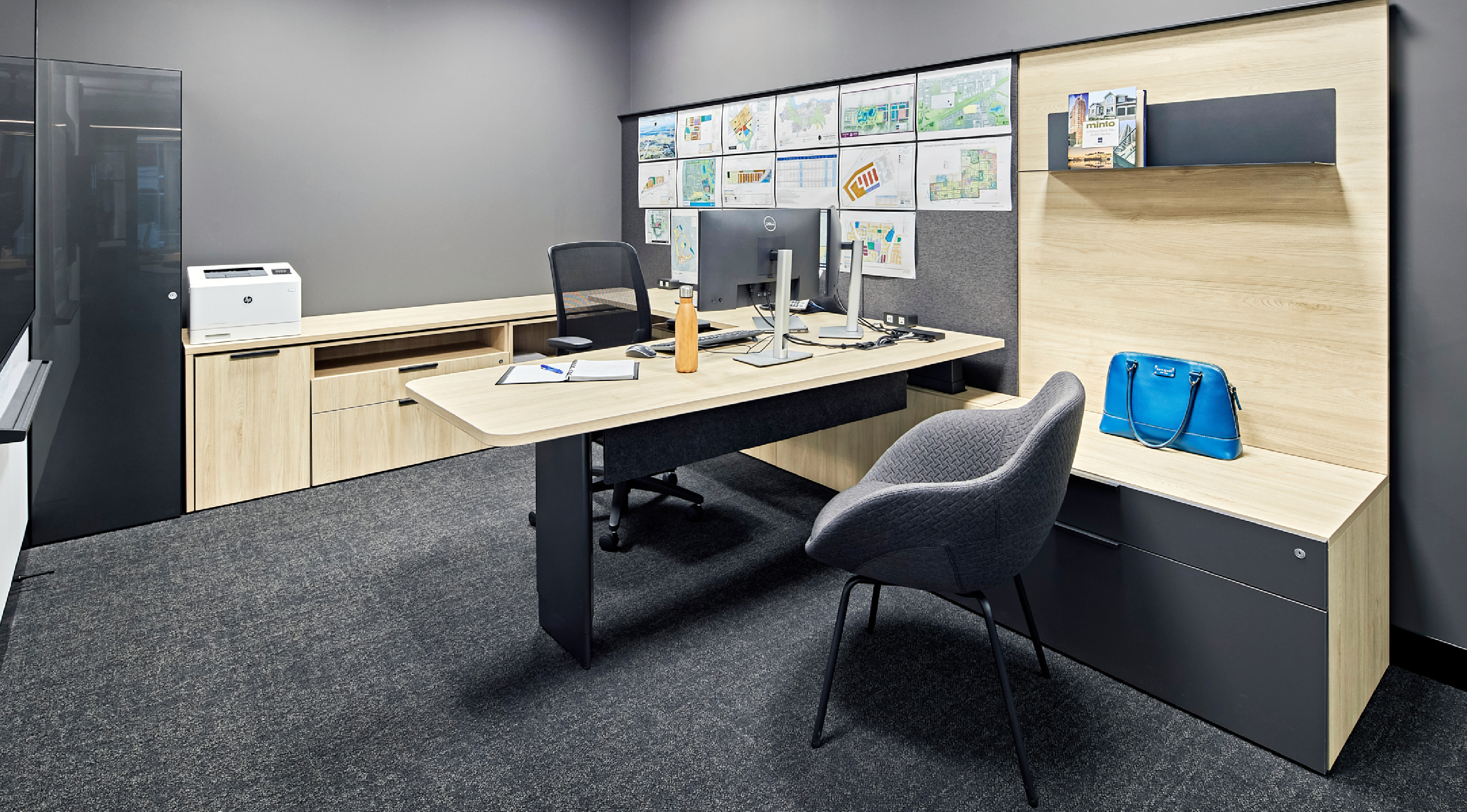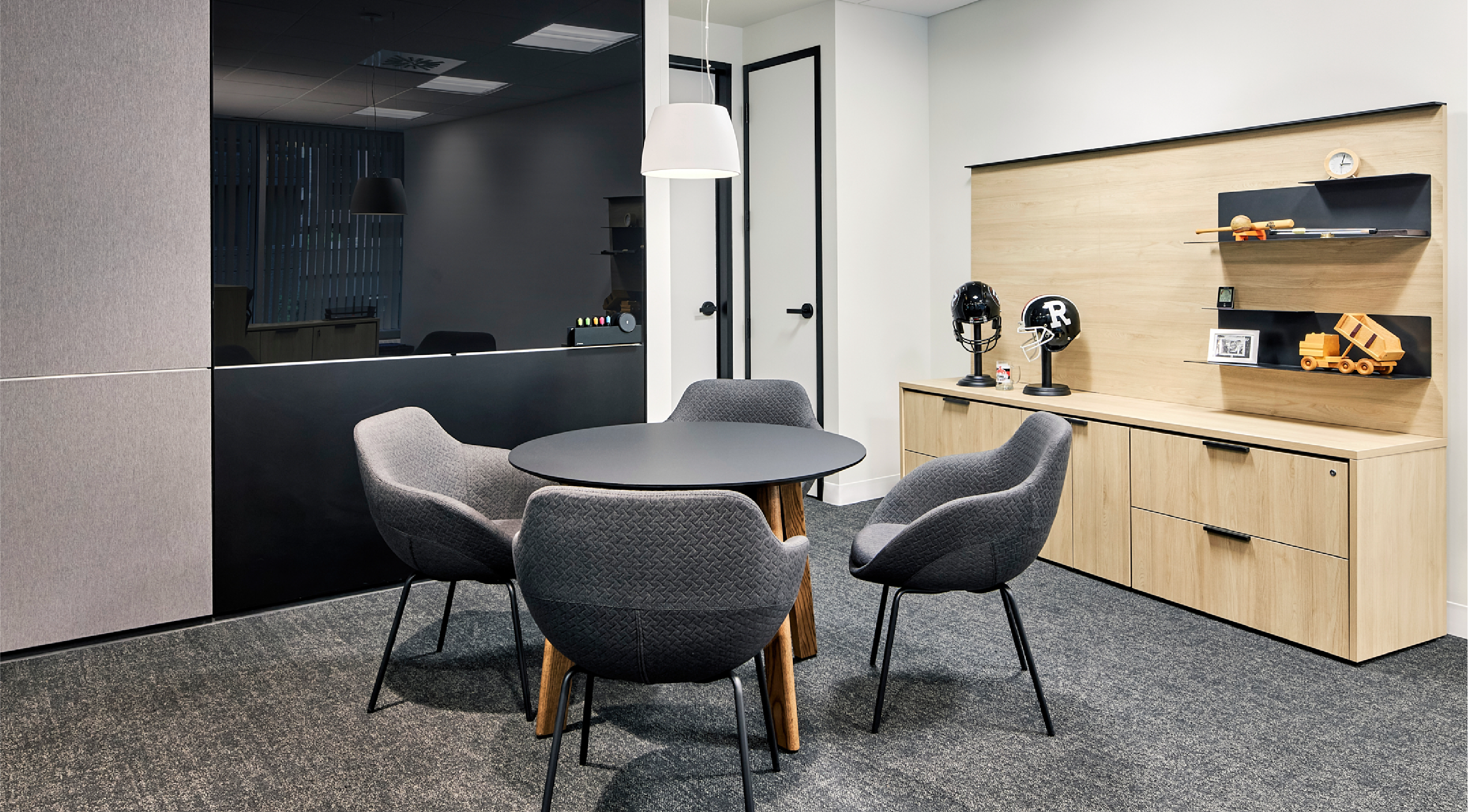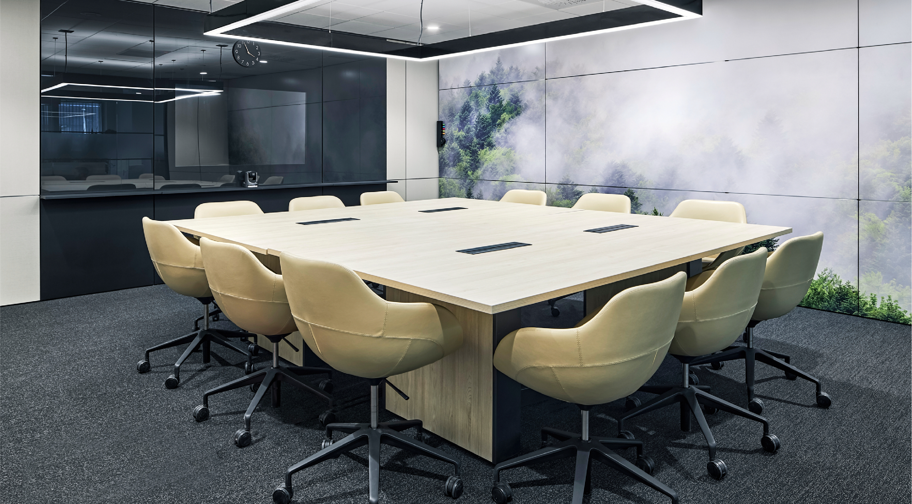 Work can be stressful, which is why Mintos’s space incorporates wellness rooms complete with comfortable furniture for relaxation and reflection. This includes a variety of lounge furniture offering a wide range of postures to encourage movement and reduce tension. Everyone’s needs are different, which is why incorporating height adjustable options throughout the space allows people to shift postures when they see fit. It was clear that collaboration was vital to the Minto Group mission, so flexible whiteboards have been integrated throughout the space to encourage teamwork. Lastly by incorporating DIRTT Timber wood framing and biophilic elements, the space fosters the employee’s reconnection with nature.