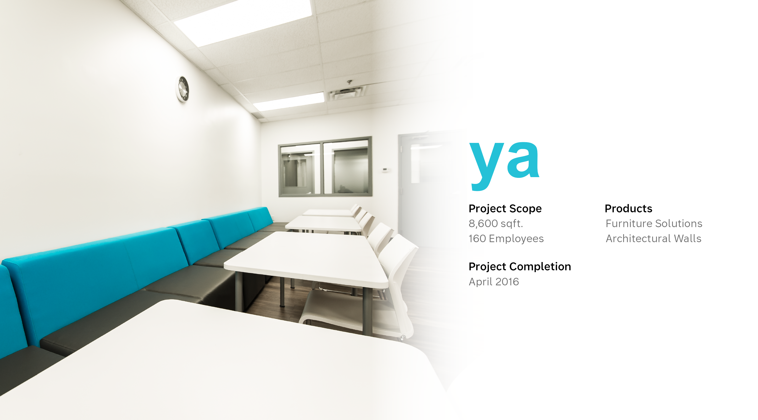 YA Engage, a digital promotion and marketing solutions provider headquartered in Chatham, needed to expand their contact centre to support double-digit employee growth. When they moved into their new facility, it more than tripled their space. The space also needed to support state of the art technology, be flexible, facilitate greater collaboration and productivity, as well as help drive talent acquisition and retention.