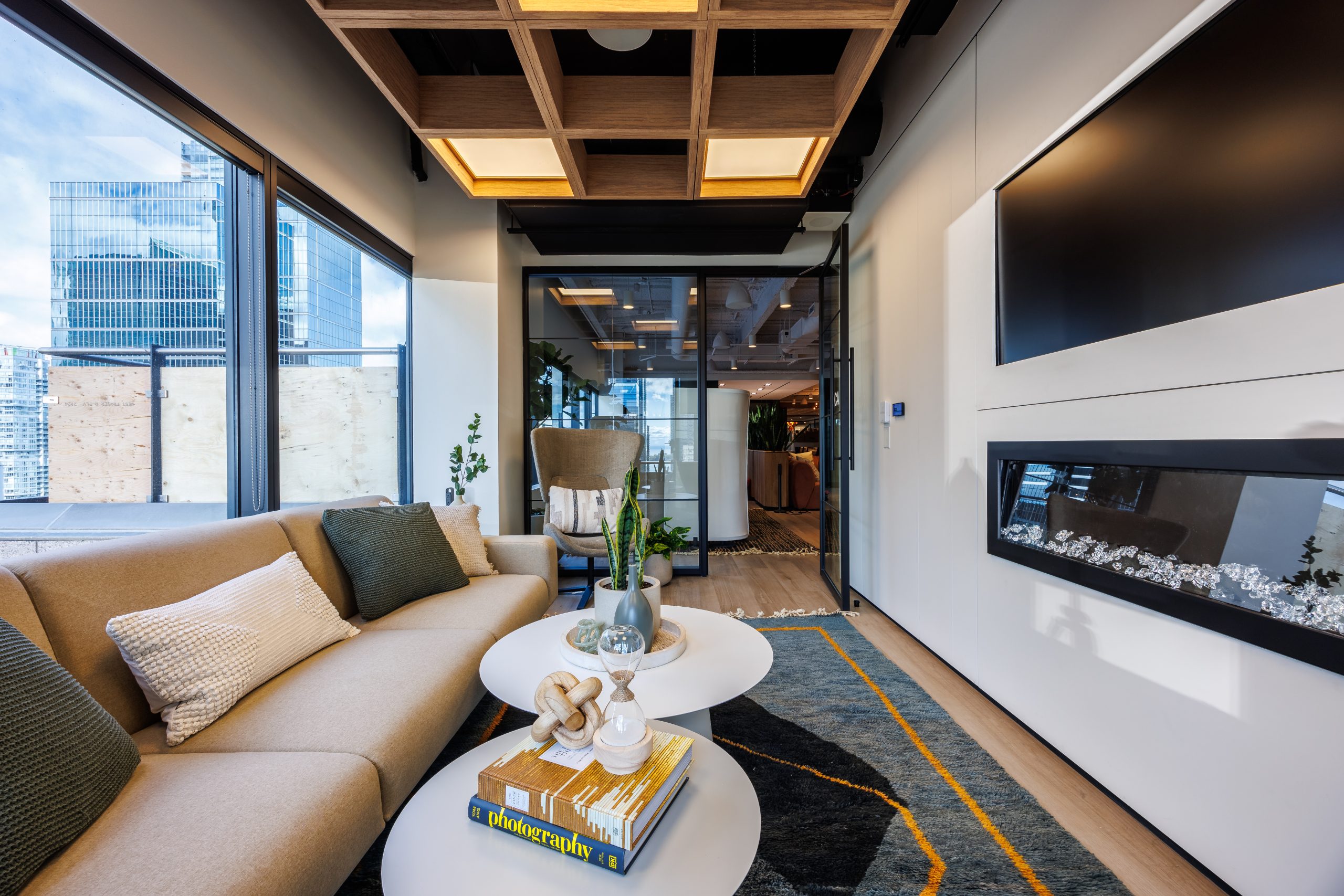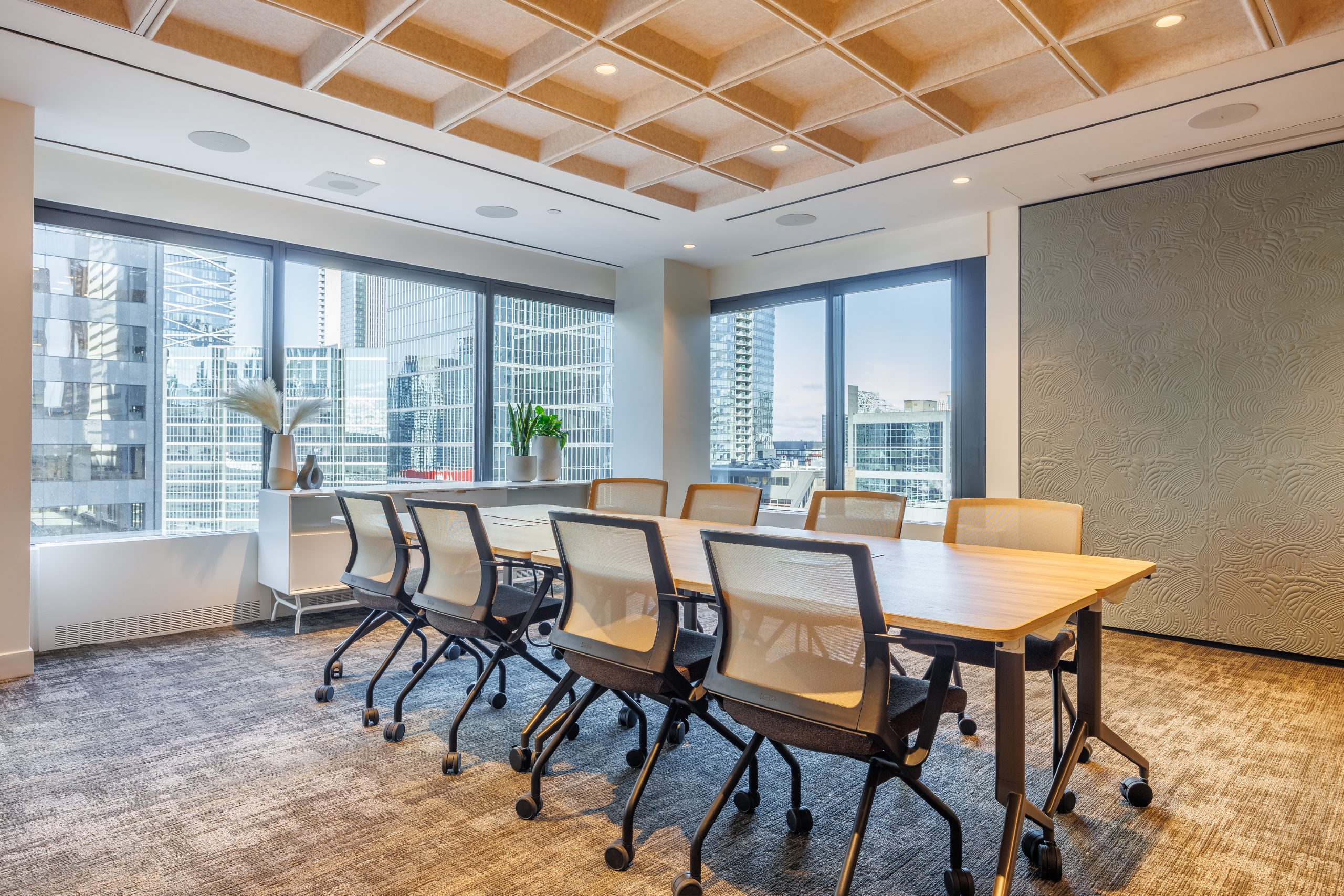Ultimately, the Roserock Place tenant lounge and conference centre acts as an extension of its tenants’ workspaces, providing a versatile environment that accommodates a range of activities—from social events and training sessions to Town Halls and overflow capacity. Whether it’s unwinding at the full-service bar, engaging in a quick competition in the sports simulator, or finding quiet reflection in the curated book collection, the tenant lounge and conference centre offers a dynamic, adaptive space that enhances the workplace experience. By enabling tenants to focus their primary office spaces on core business activities, Roserock Place maximizes efficiency and creates a workplace where people genuinely want to be—a space that inspires and uplifts, making every day a little brighter.