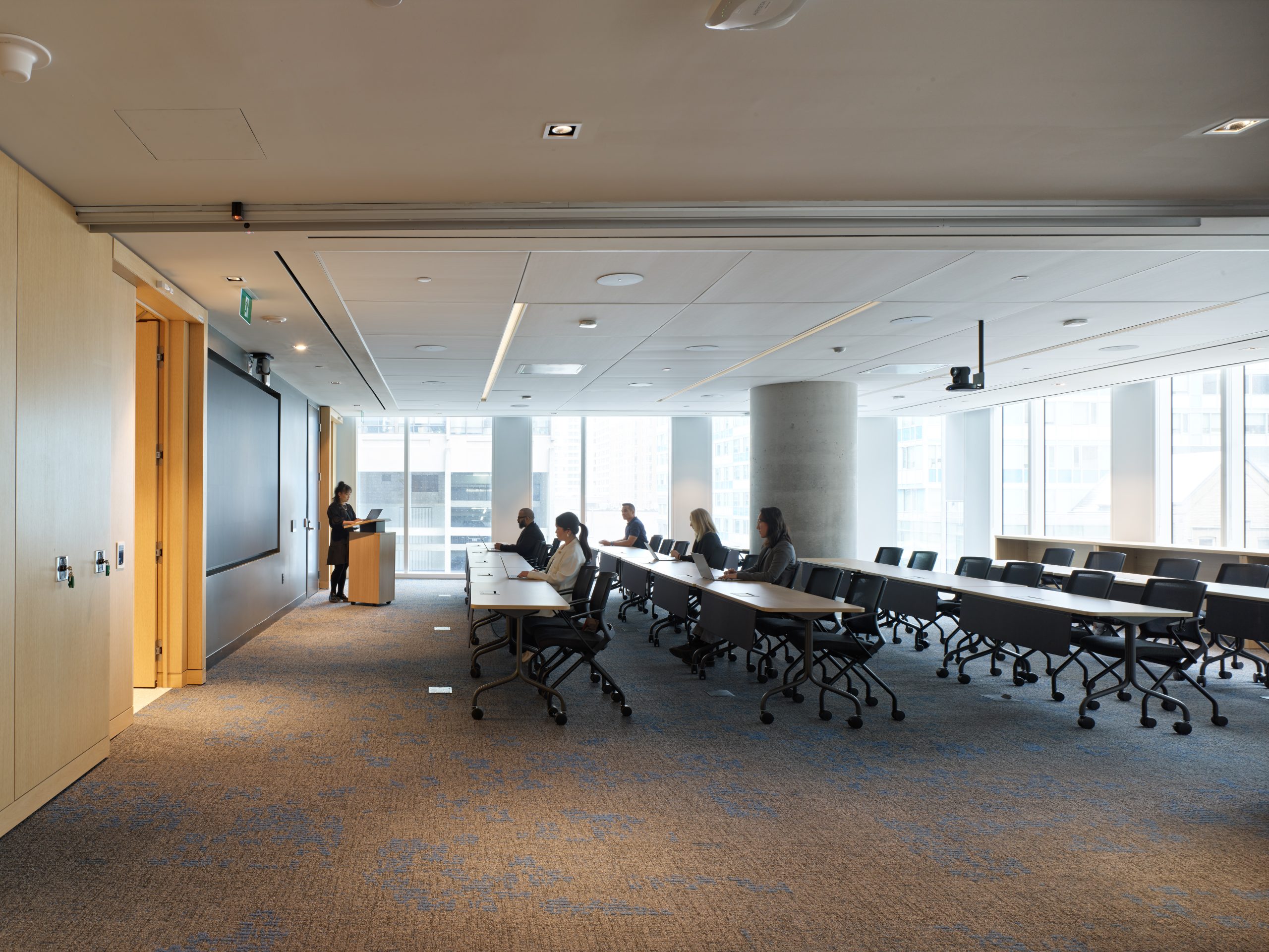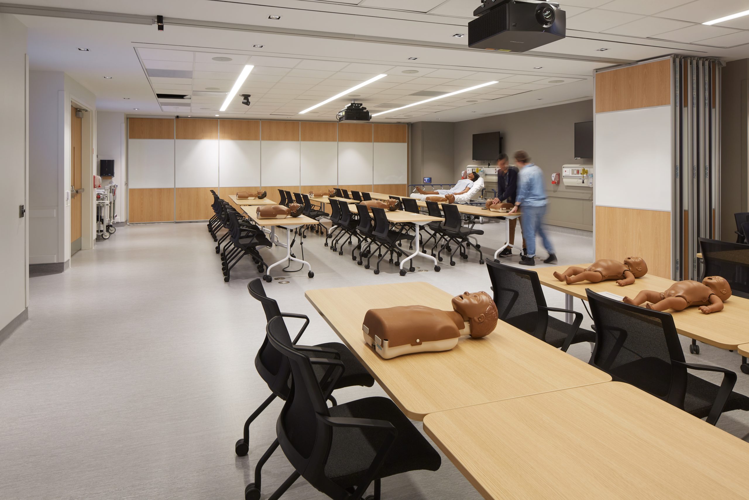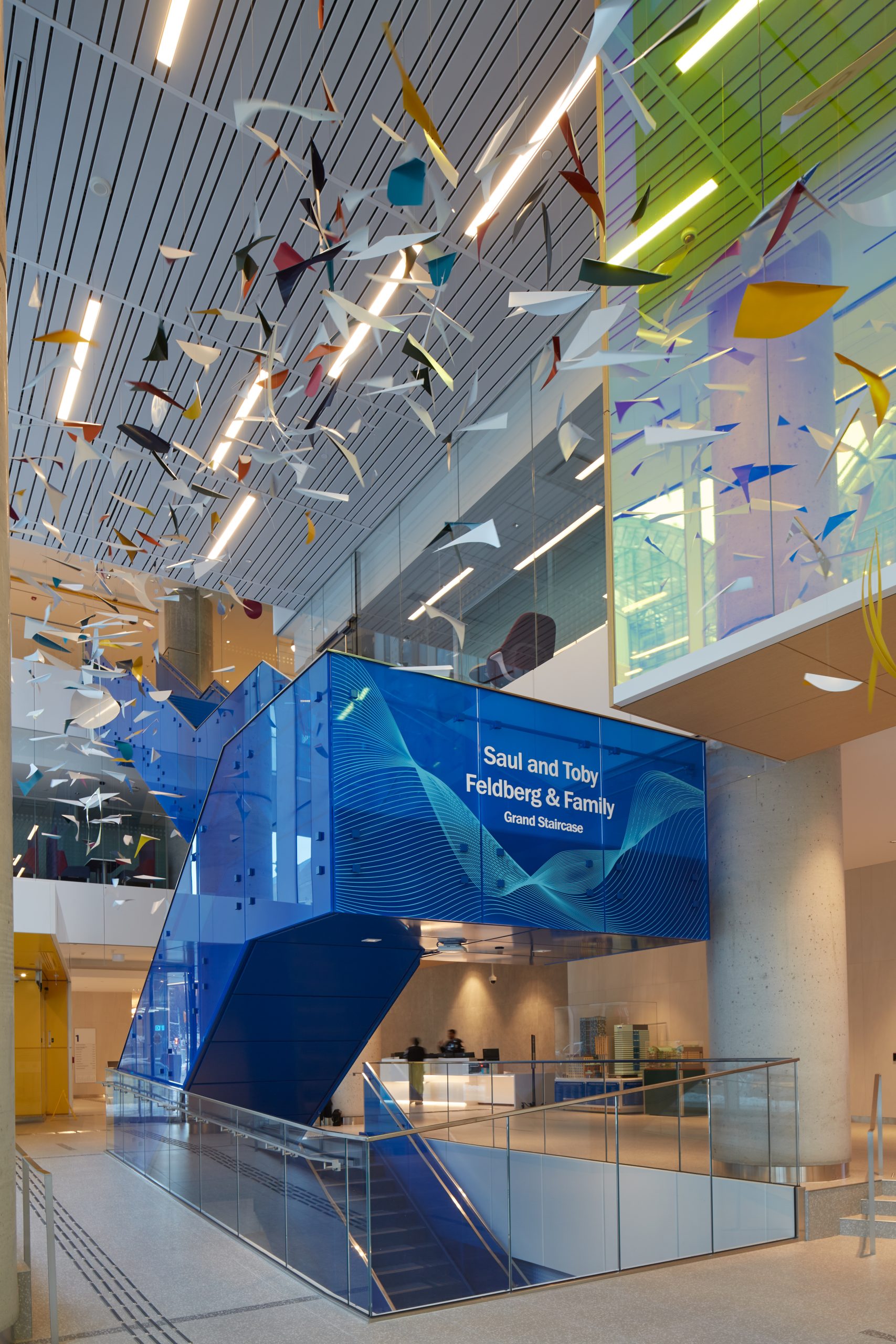 The Patient Support Centre (PSC) at SickKids is a significant addition to its campus as part of Project Horizon, marking a major step in transforming SickKids into a hospital of the future. This 22-storey tower serves as an education, training, and administrative building, consolidating core hospital services into a central hub. With spaces dedicated to collaborative work, learning, and wellness, the PSC is designed to enhance staff productivity and well-being across 30 departments, supporting nearly 3,000 staff members.