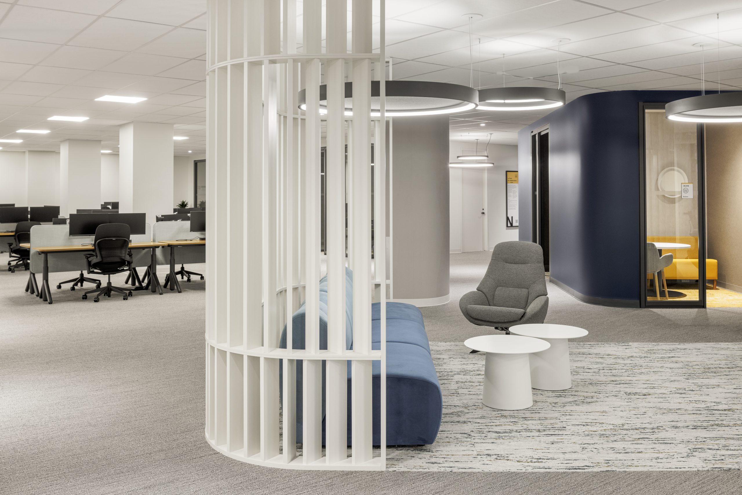 The project integrates collaborative spaces, workstations, lounges, meeting rooms, and advanced technology, all thoughtfully tailored to meet the evolving needs of hybrid employees. In collaboration with Sun Life’s internal design team, and supported by POI’s expertise in furniture, construction solutions, and move management, the space exemplifies a seamless blend of functionality and inspiration.