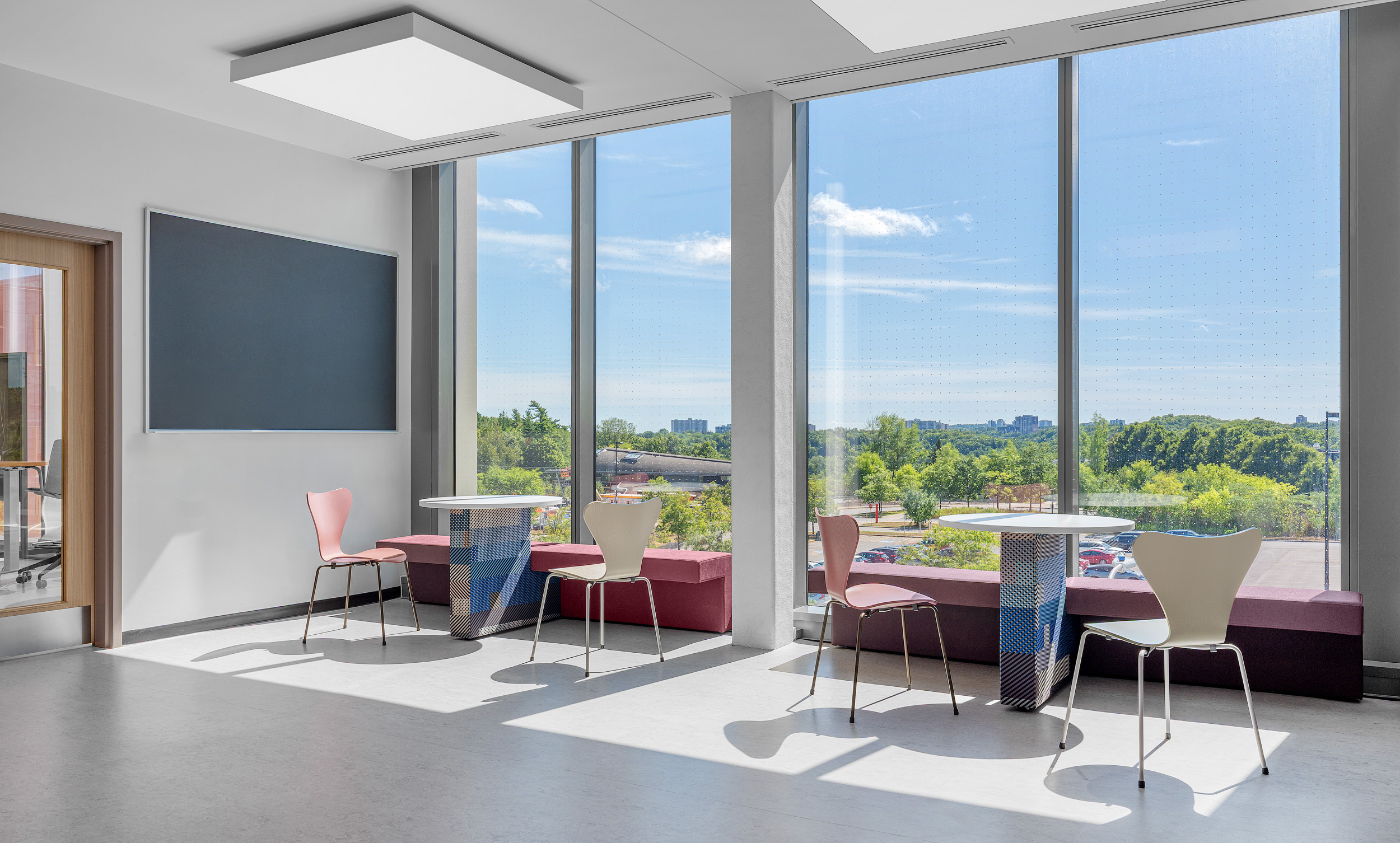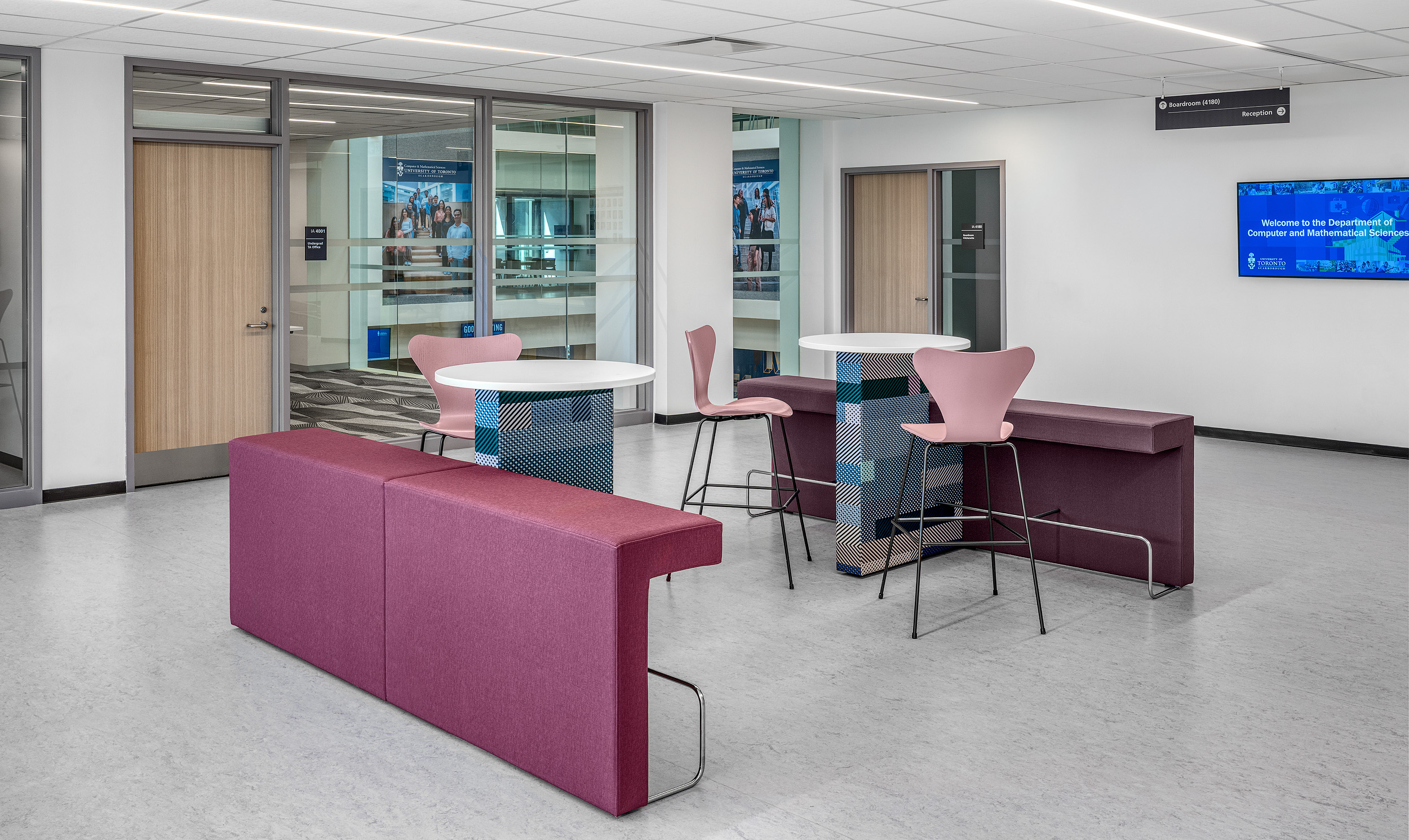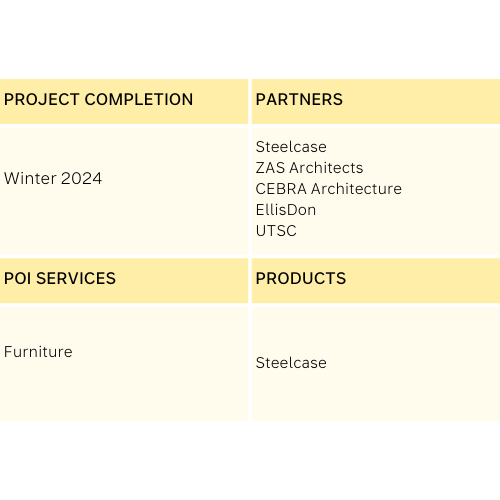 The renovation of the Sam Ibrahim Building at the University of Toronto Scarborough aimed to create a more interactive, student-centered learning environment that embraced technology and flexibility. With an emphasis on active learning, quiet study, and communal engagement, the project required a seamless integration of media into furniture, adaptable workspaces, and collaborative areas that would enhance student experience.